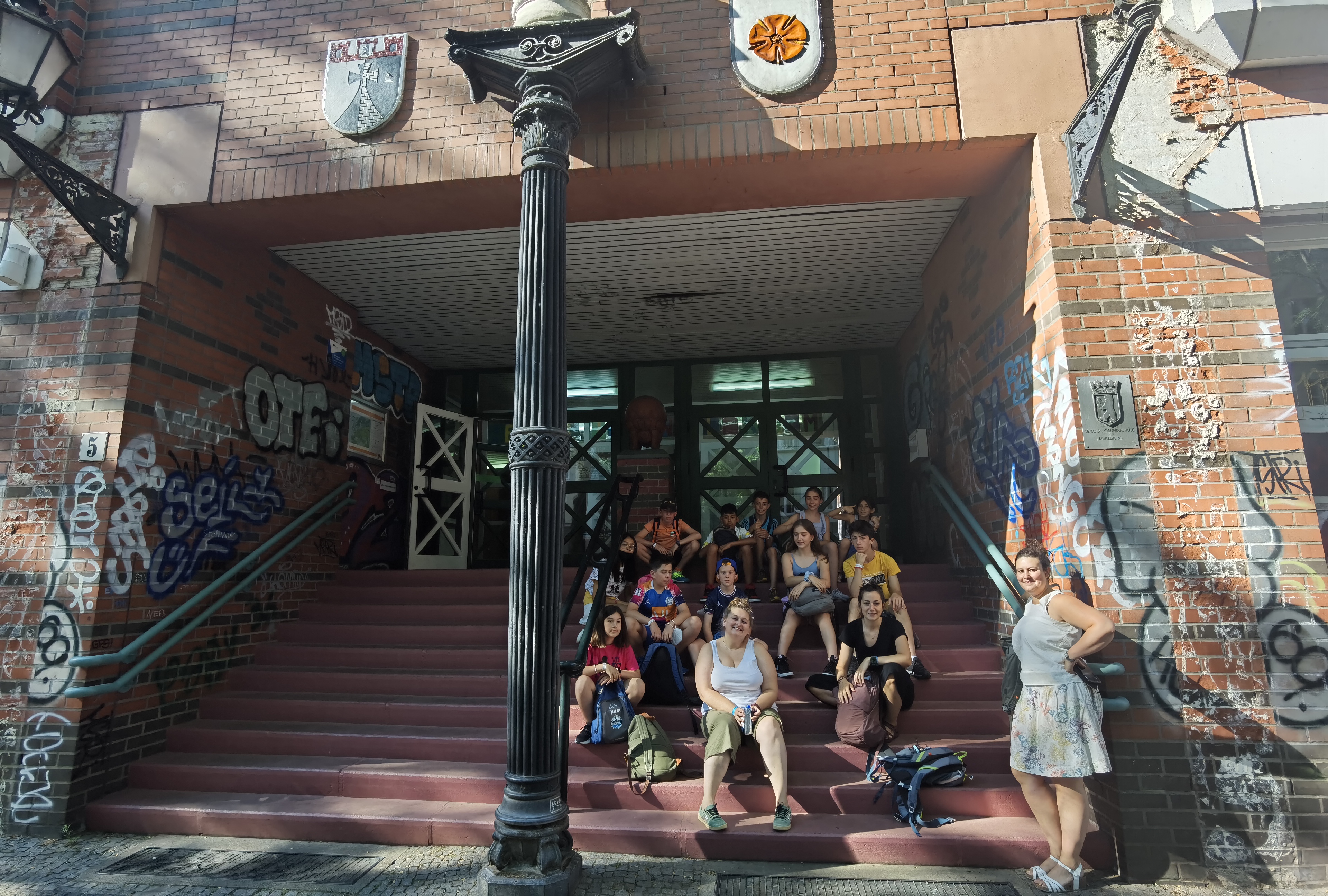 El pasado mes de junio, del 22 al 27 de junio, 11 alumnos/as se fueron a Berlín acompañados/as de tres profesoras del centro. Allá tuvieron diversas experiencias educativas, culturales e incluso lúdicas. Intercambiaron canciones dramatizadas con ritmos corporales, juegos deportivos y conversaciones en inglés y en alemán con varios cursos de las Lemgo Grund Schule y Albrecht-von-graefe-Schule. La experiencia fue muy enriquecedora para ellos/as. Por las tardes, aprovecharon para visitar museos, hacer visita por la ciudad de Berlín, conociendo la historia a través de una profesional que les explicó lo más relevante del muro y la segunda guerra mundial. Pero no todo fue pedagógico y cultural, aprovechando que una de las pasiones comunes en esta clase es el lego, visitaron la "Legoland".