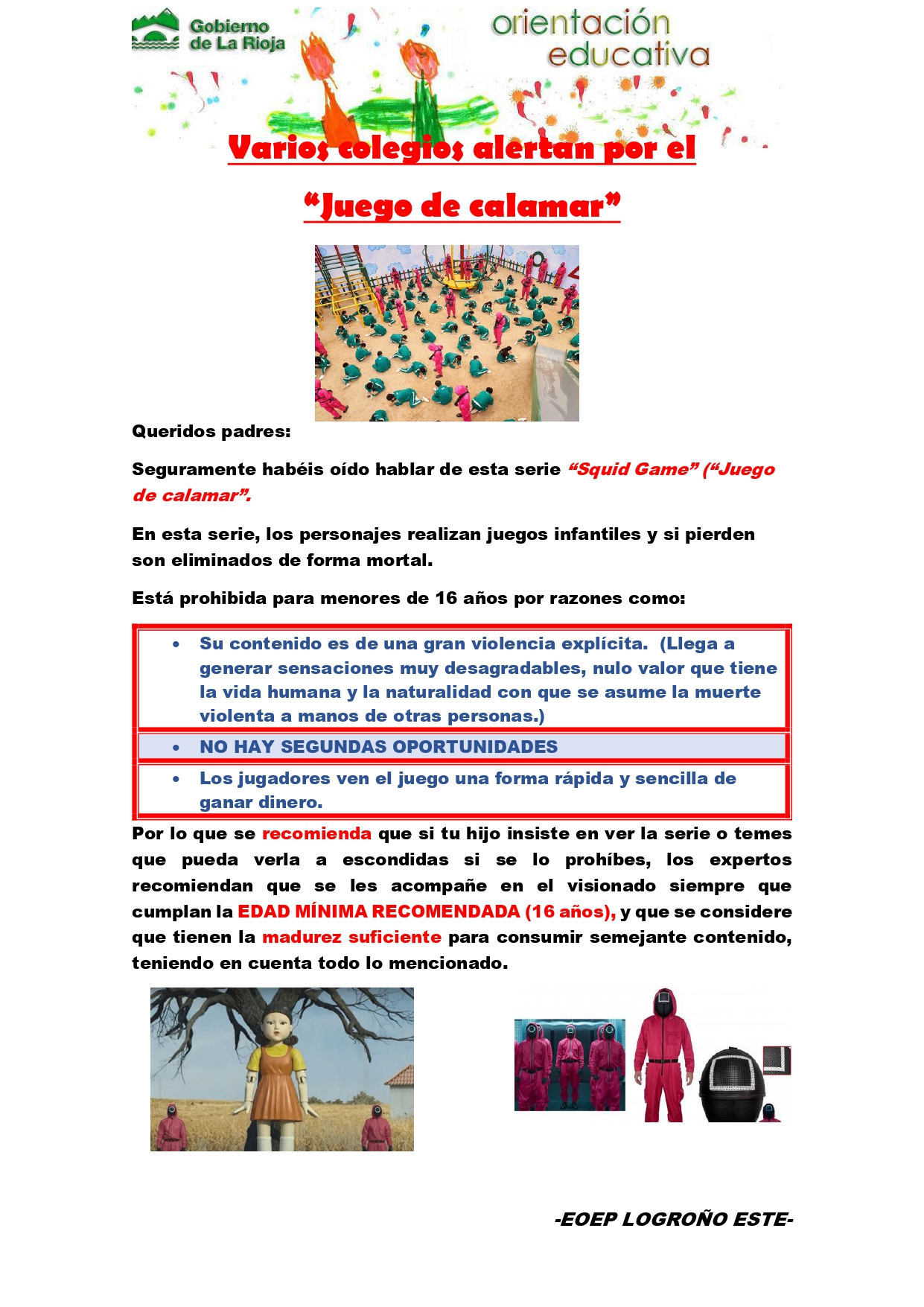 Desde el equipo de orientación, nos hacen llegar este aviso e información importante sobre una serie que está generando ciertos aprendizajes negativos en los/as alumnos/as.