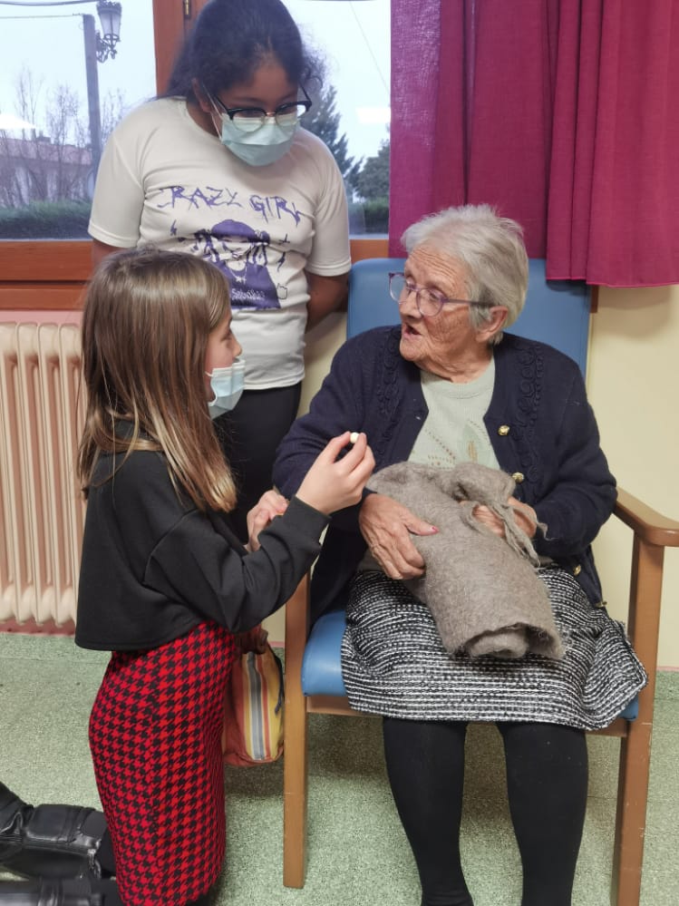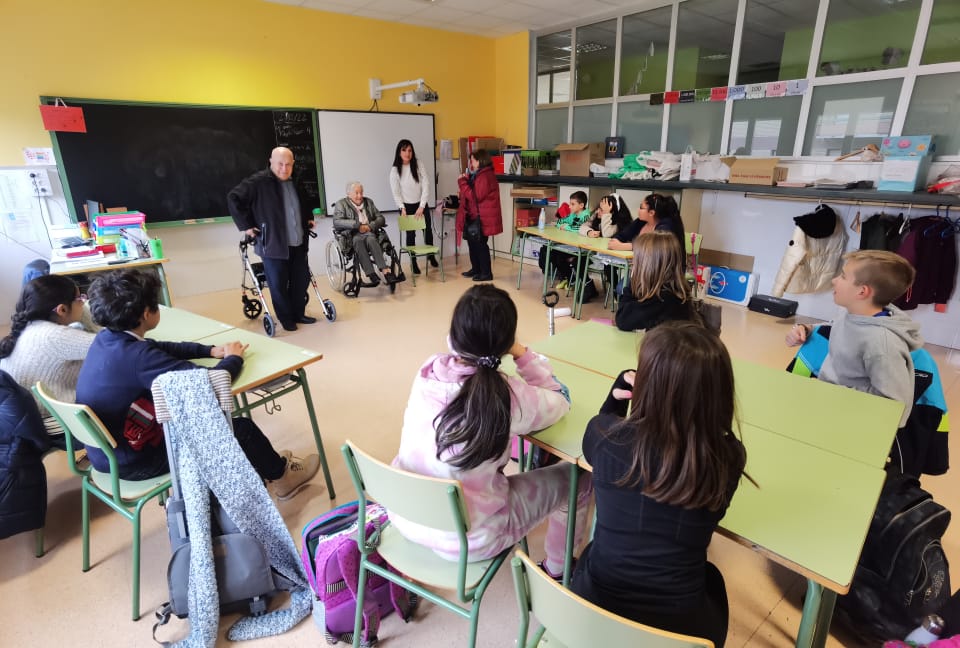 En diciembre, la clase de 4º de primaria recibió una visita de tres personas que viven en la residencia de persona mayores de Ezcaray. Ellos les pidieron ayuda, porque realizan determinados juegos y actividades por las tardes en las que les gustaría que los/as niños/as pudieran acudir para echarles un cable, ya que muchas de las personas que residen allá, no ven bien, no oyen o no tienen una movilidad que les permita interactuar adecuadamente. Los/as alumnos/as enseguida dijeron que querían participar y hacer el voluntariado.