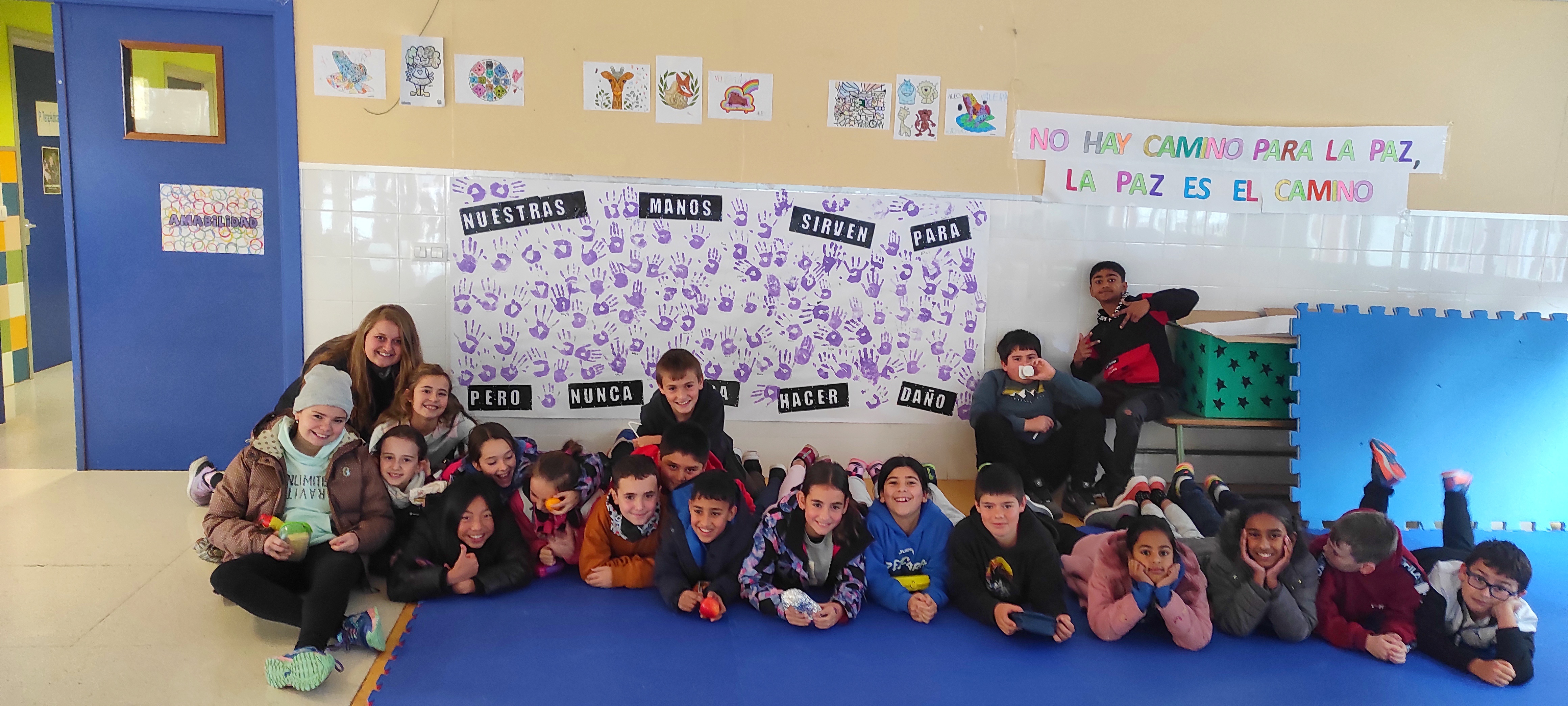La semana pasada fue el día contra la violencia machista, el 25 de noviembre. Los alumnos de 5º de primaria colocaron en su pasillo unos mensajes de ánimo a todas esas mujeres que son víctima de esta situación en sus casas y además, todo el centro, desde educación infantil hasta 6º, hicimos un mural de manos violeta en el cual escribimos la funcionabilidad positiva de las mismas con el fin de dar consciencia del verdadero potencial del ser humano para construir un mundo mejor, tratando así de eliminar la violencia que, desgraciadamente, sigue existiendo.