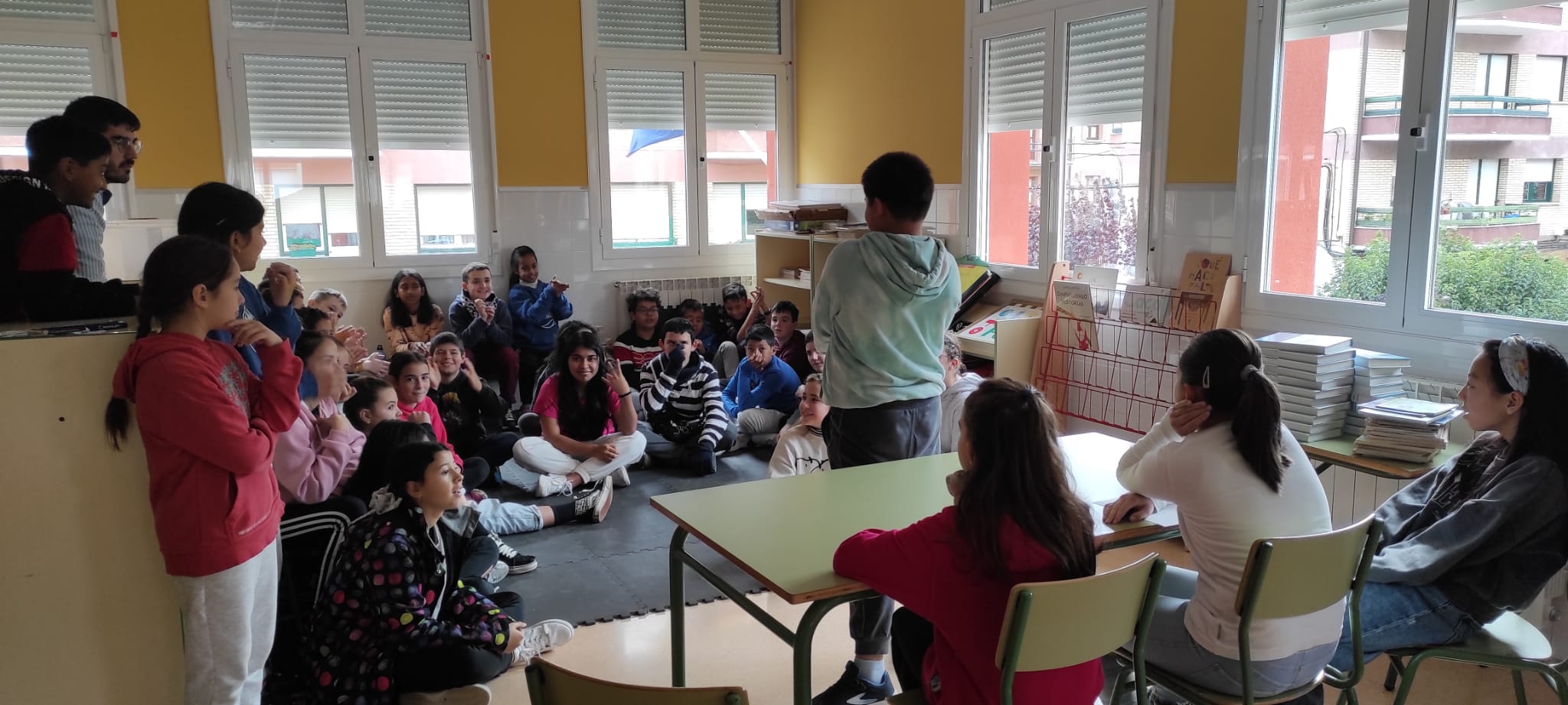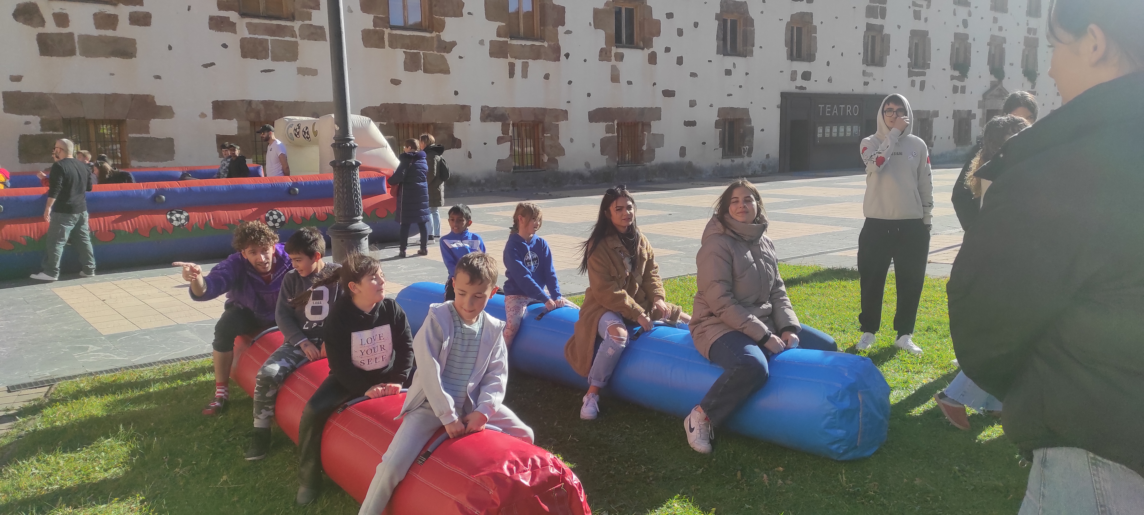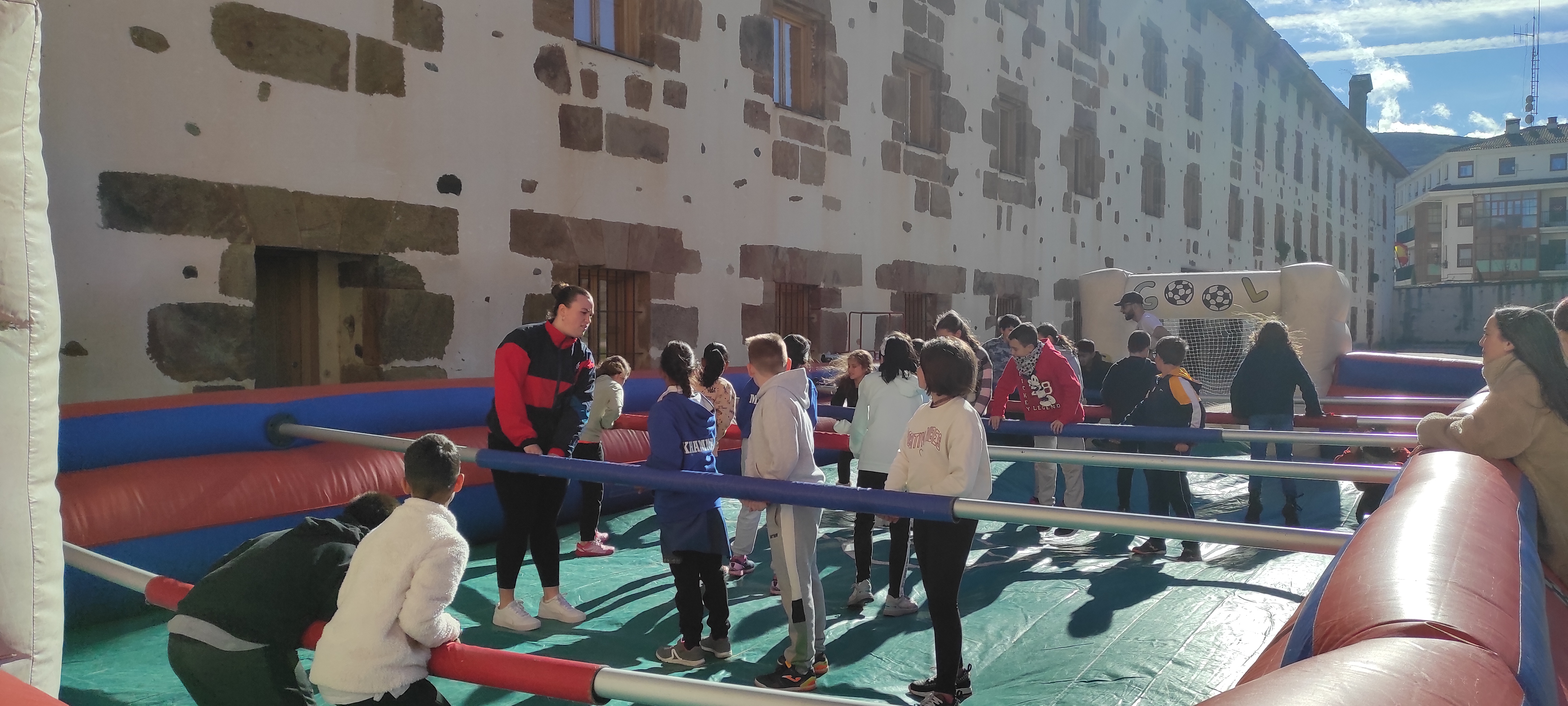 Por otro lado, el miércoles de la semana pasada, nos invitaron de manera espontánea a un evento que prepararon en la plaza del ayuntamiento los organizadores de un meeting de Erasmus + que tuvo lugar en el pueblo. Prepararon una serie de juegos cooperativos y almuerzo para los alumnos del colegio.